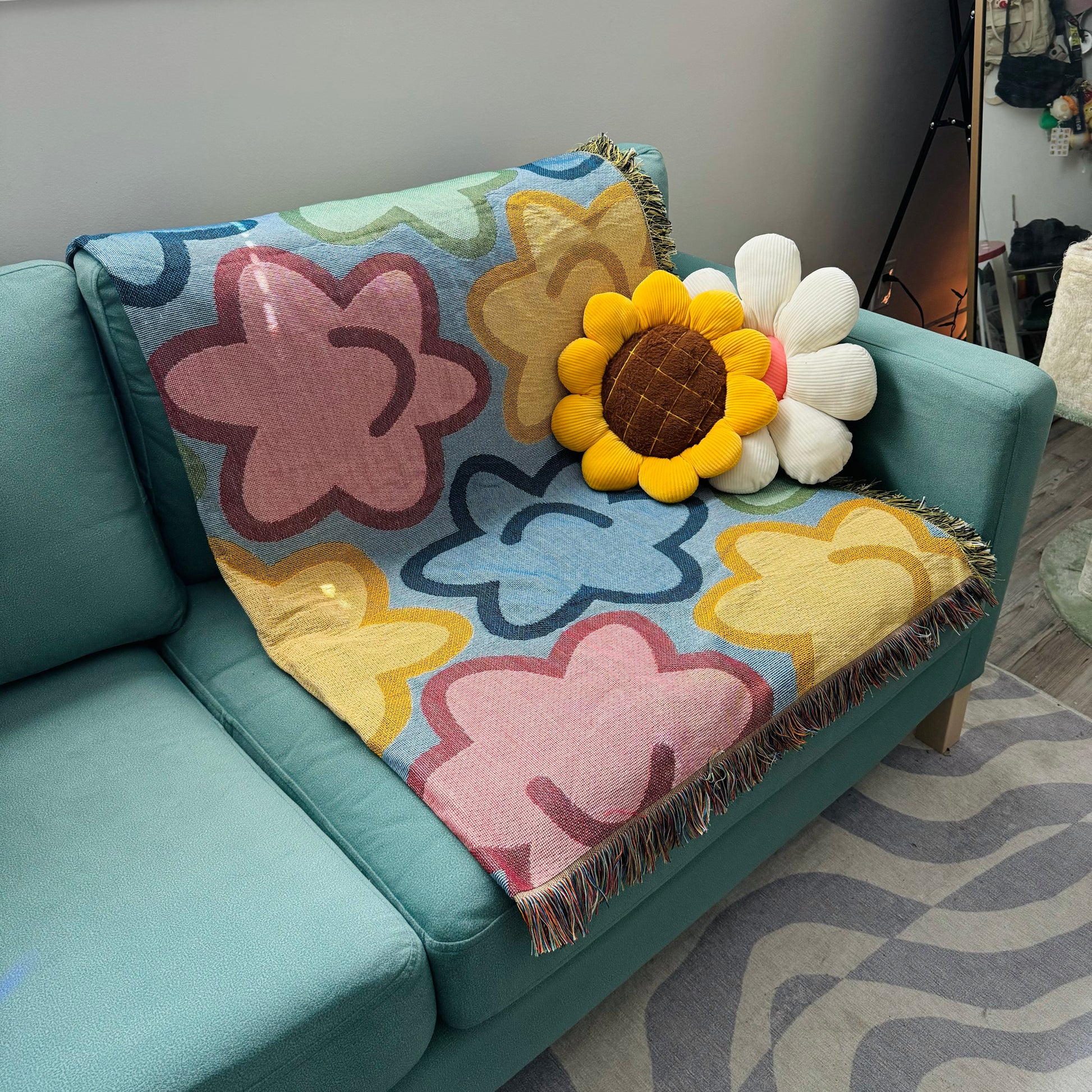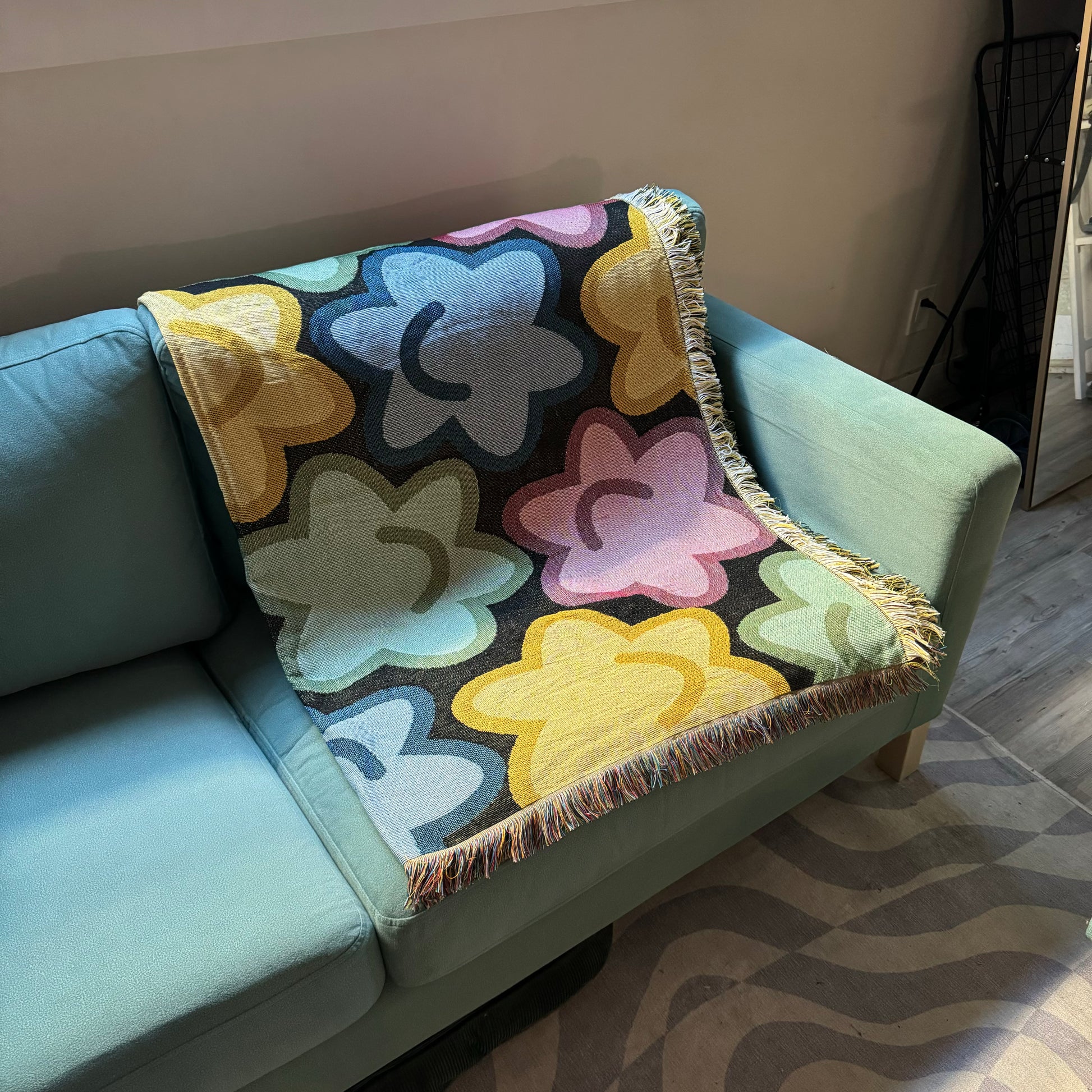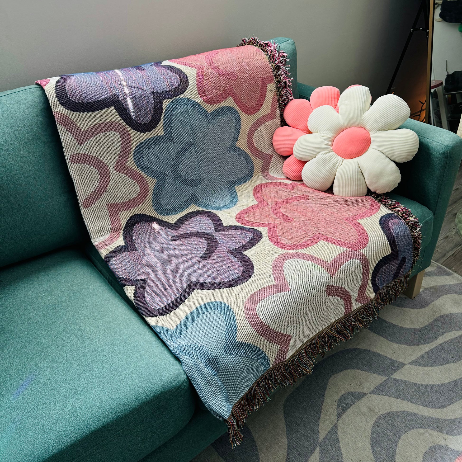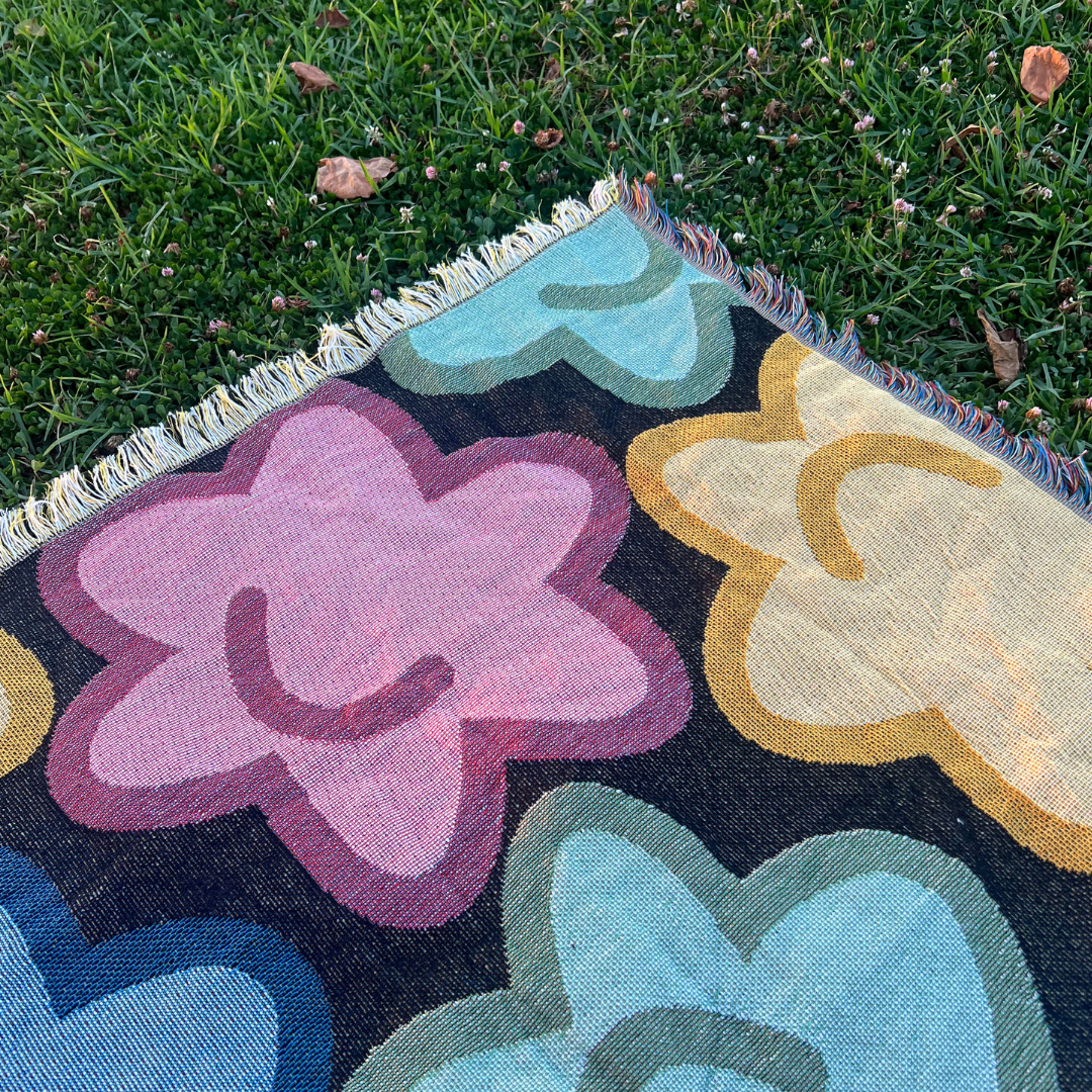 Cozy throw blanket with adorable konpeito candies, perfect for decorating your space or taking on a picnic. Material softens up with use.